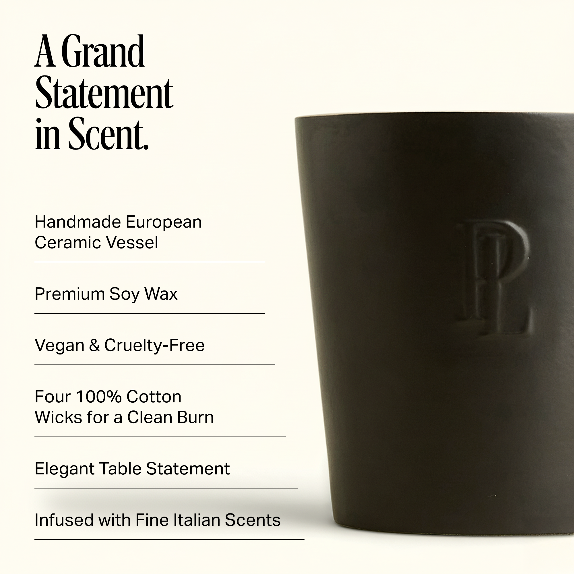 Designed to anchor a room and set the mood for the entire home, the Statement Ceramic Candle is fragrance and form at their most considered. With an oversized 70-ounce pour and four wicks, it fills large spaces with a beautiful, even burn while doubling as a sculptural design object.
